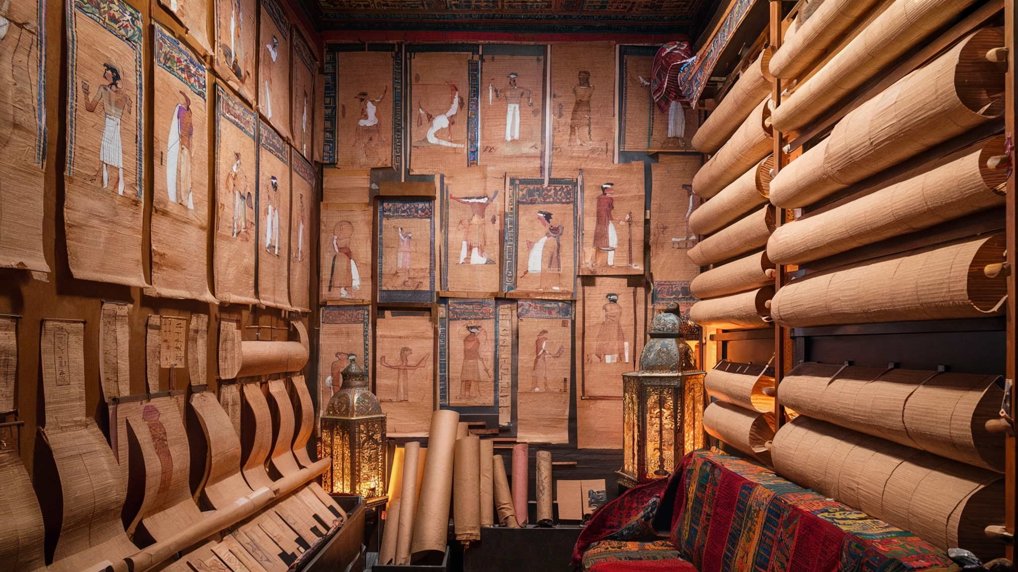 ปาปิรุสเป็นกระดาษที่ทำจากต้นกก ซึ่งเป็นวัสดุที่ชาวอียิปต์โบราณใช้ในการเขียนหนังสือและภาพวาด ผลิตภัณฑ์จากปาปิรุส เช่น ภาพวาด, การ์ด, และหนังสือภาพ เป็นของฝากที่มีคุณค่าทางประวัติศาสตร์และสวยงาม คุณจะได้สัมผัสถึงศิลปะและวัฒนธรรมของอียิปต์ในทุกๆ ผลิตภัณฑ์