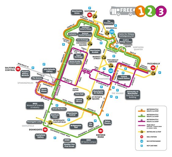 Manchester metro shuttle map